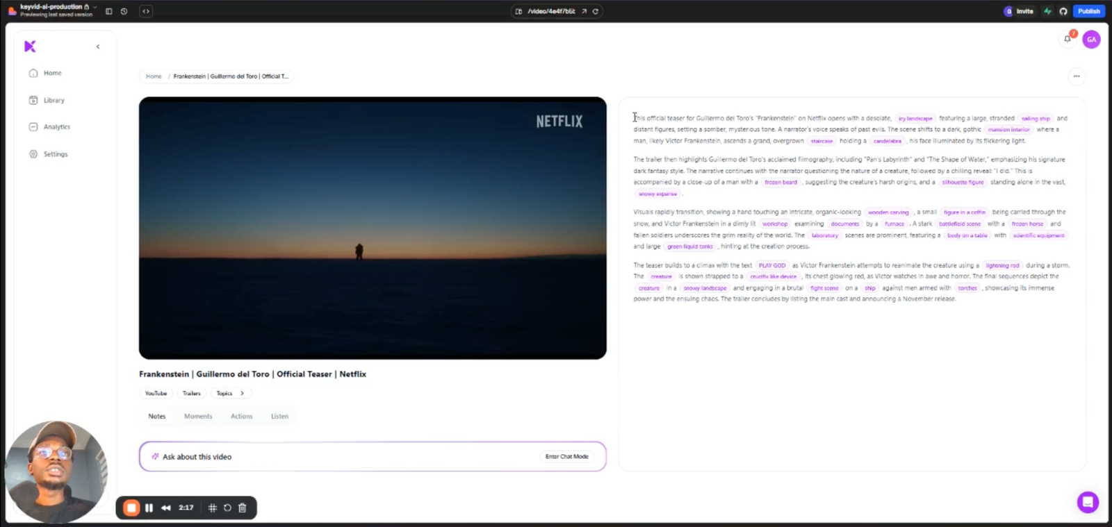 "KeyVid AI sees what other tools only hear. Going beyond transcripts by using AI to analyze your video's visuals. Letting you get the full context audio misses and instantly search for any on-screen action, visual cue, object, or even facial expression in your videos."