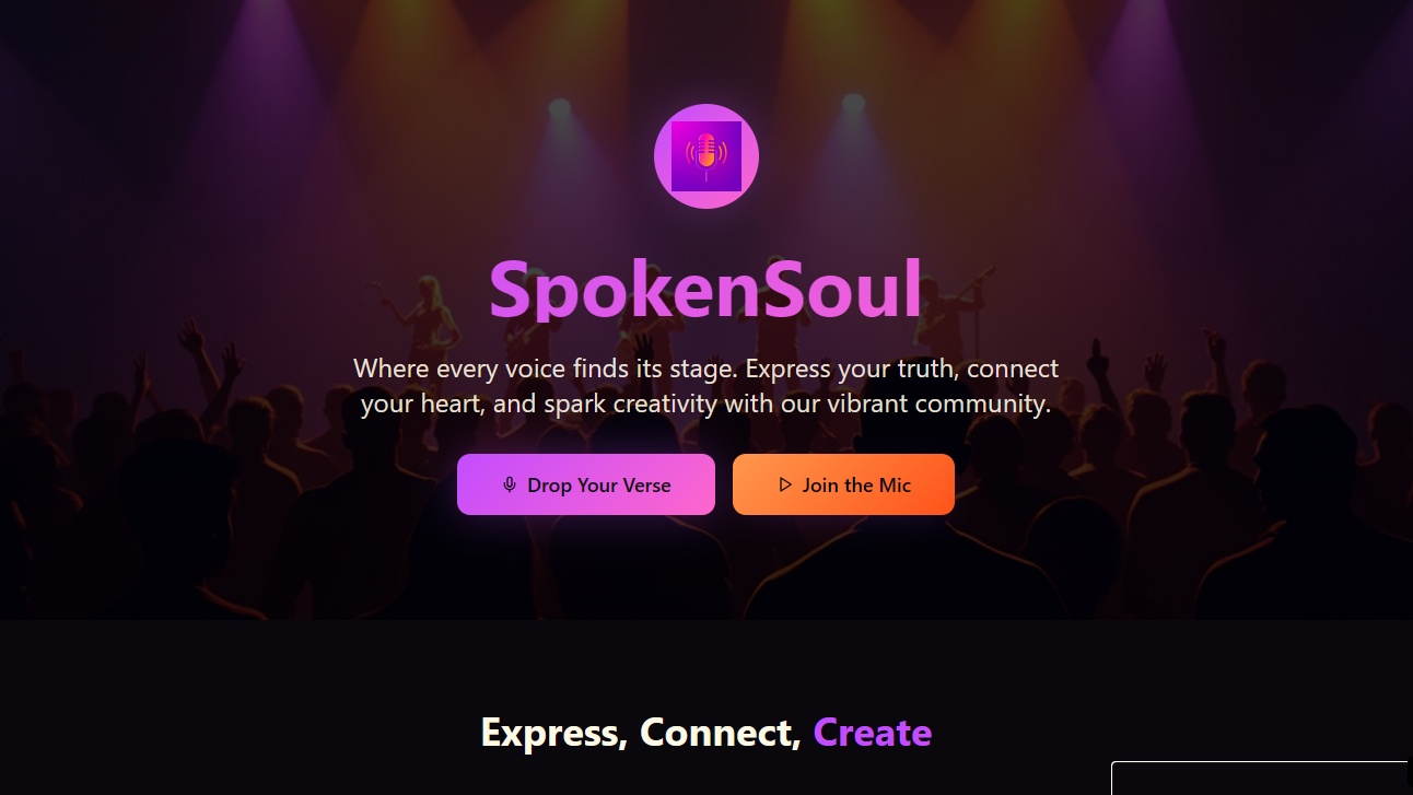 "Spoken Soul is an interactive performance and community platform designed for creatives to connect, share, and grow their voices. It provides an immersive space where artists can host or join open mic rooms with themes like poetry, hip hop, jazz, storytelling, R&B, acoustic, comedy, and karaoke. Each room invites performers and audiences to engage in real-time."